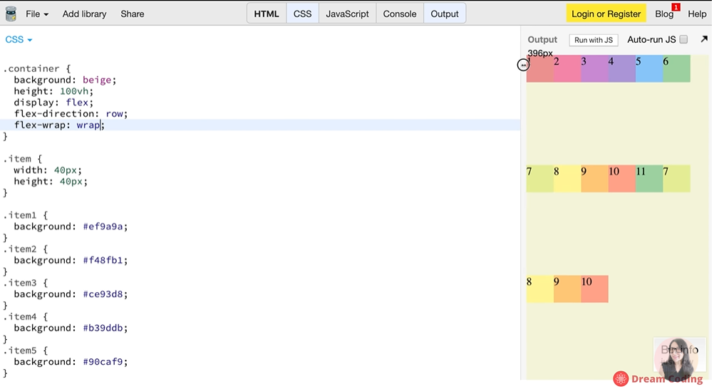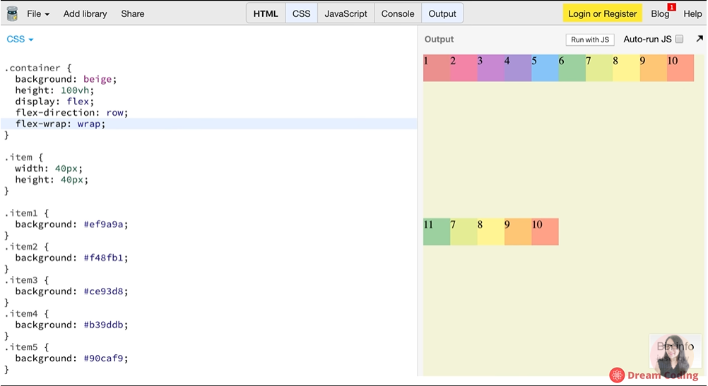 flex-wrap: wrap 은 1줄에 item들이 꽉차게 되면 자동적으로 다음줄로 item들이 넘어가서 정렬되는데, html화면이 줄어들면 그에 맞춰서 item들이 유동적으로 아래줄로 이동하며 정렬됩니다.