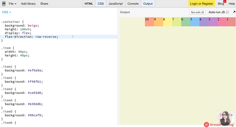 row-reverse(오른쪽에서 왼쪽 방향으로정렬)