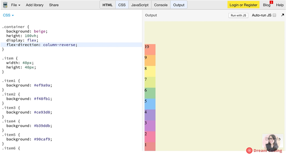 column-reverse(아래에서 위쪽 방향으로 정렬)