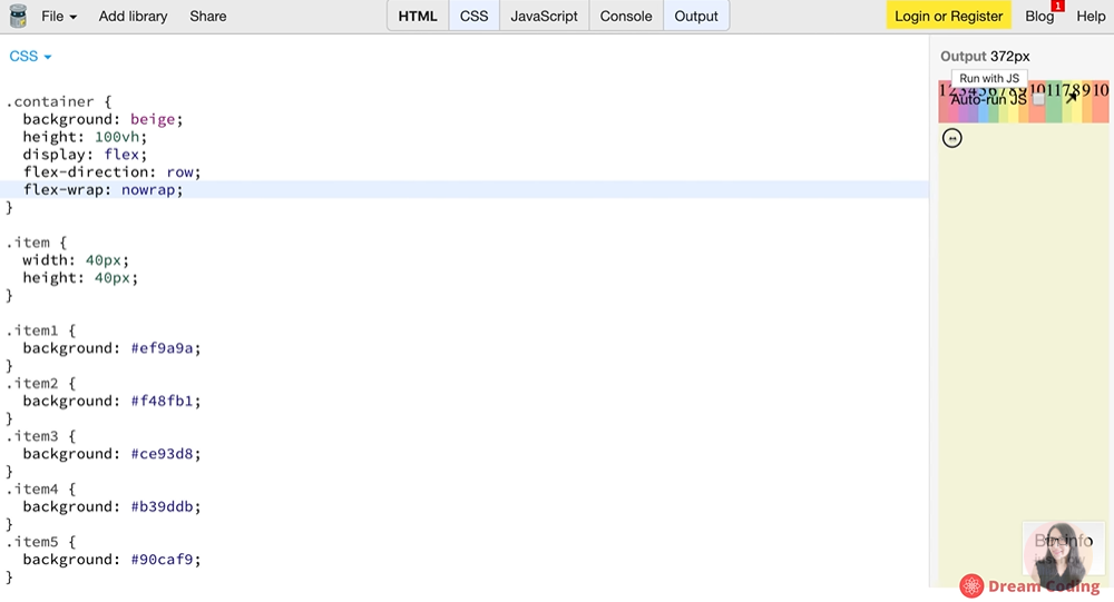 flex-wrap: nowrap(기본값) 은 html화면이 줄어들면 1줄에 모여있는 모든 item박스들의 너비가 함께 줄어듭니다.