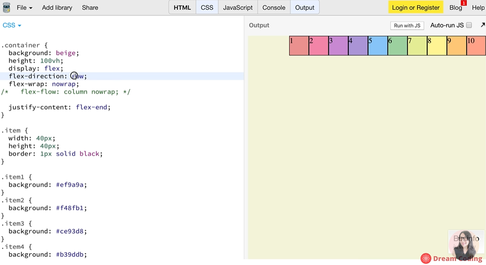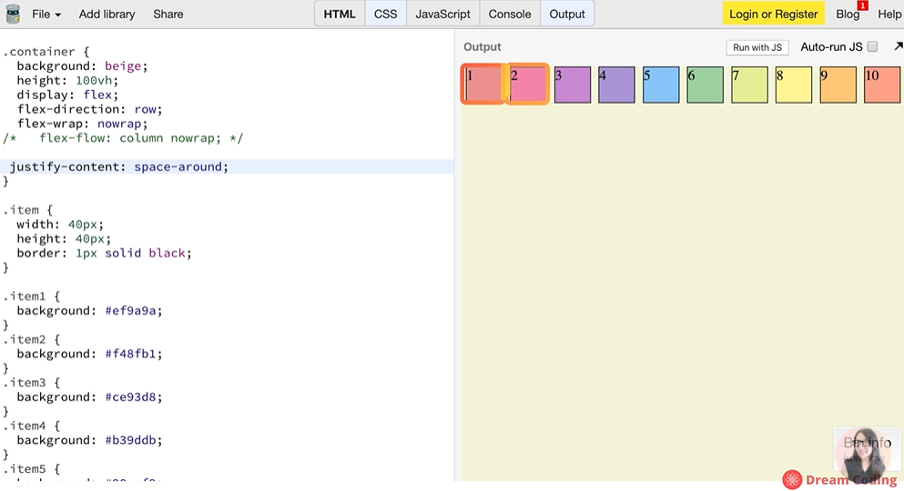 위의 flex-direction과 flex-wrap을 합쳐서 쓸 수 있는 코드가 flex-flow입니다.