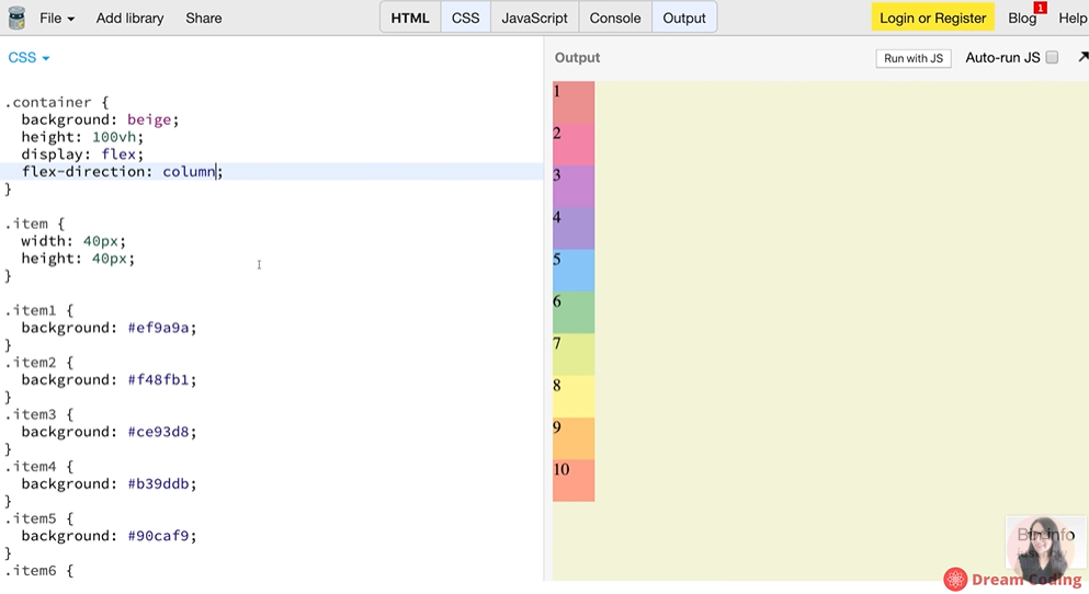 flex-direction: column(위에서 아래쪽 방향으로 정렬)
