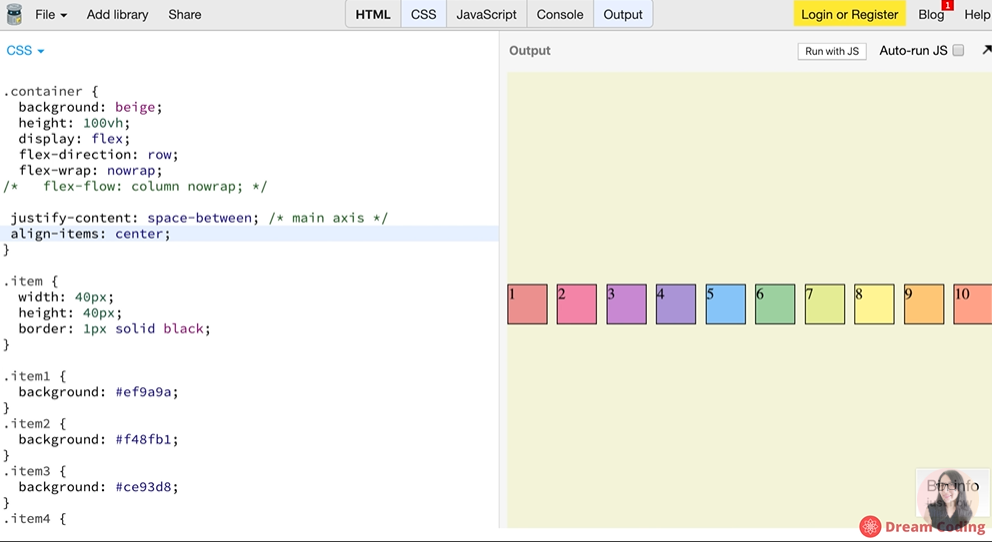 contaienr박스의 속성값 설정에 따라 item들을 정렬할 때 수직, 수평의 기준을 두는 것에 대한 차이가 있습니다. 밑에서 좀 더 자세히 알아보도록 할게요.