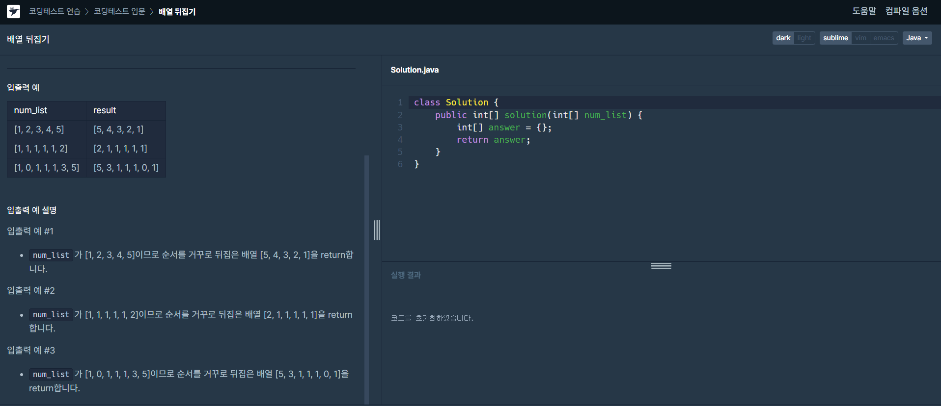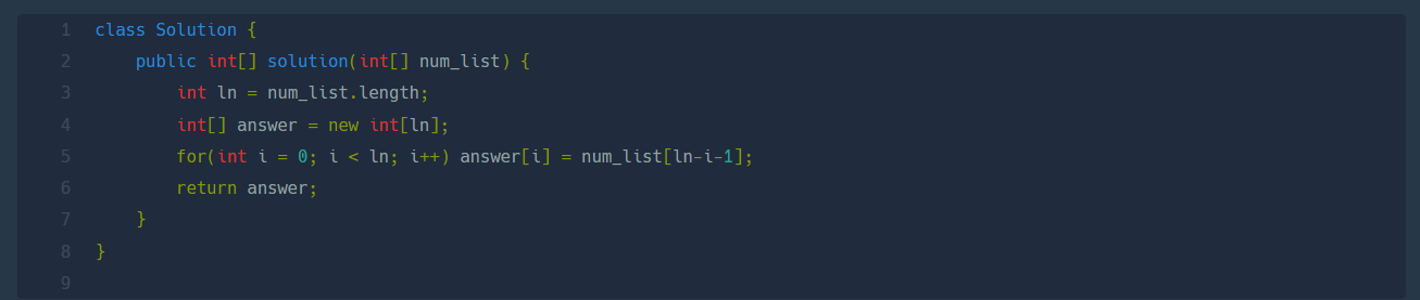 먼저 int형 배열인 reverse 변수를 num_list의 길이만큼 선언합니다.