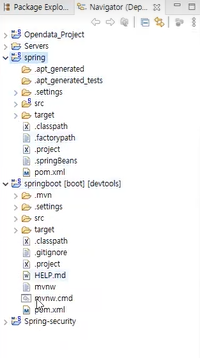 생성된 프로젝트 모양이 스프링과 다른 것을 확인할 수 있습니다.
