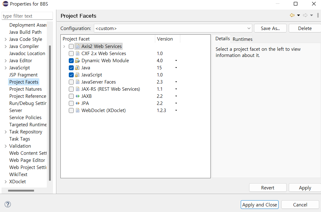 프로젝트 우클릭 > Properties > Project Facets > Java 버전을 본인 것에 맞게 재설정