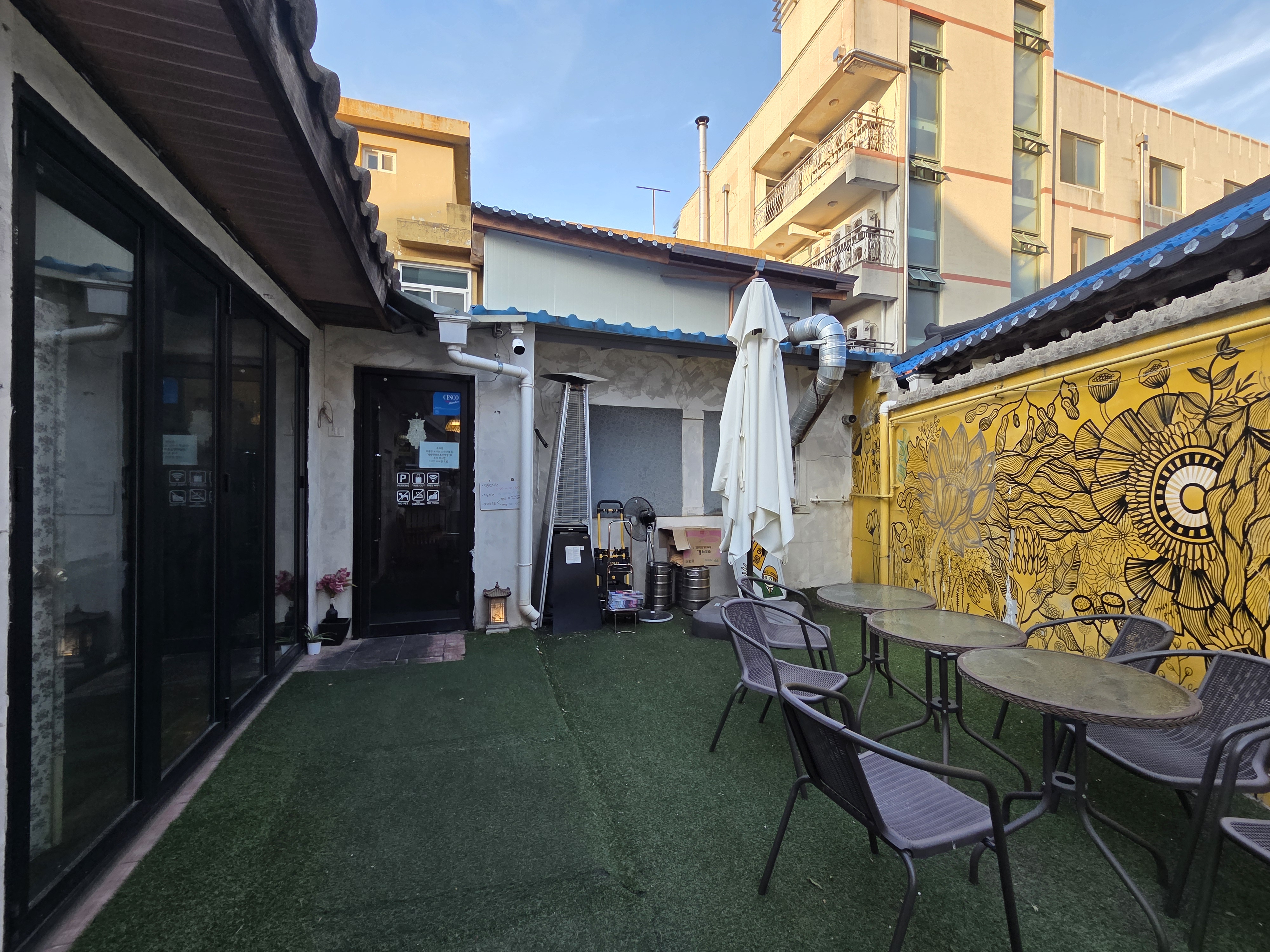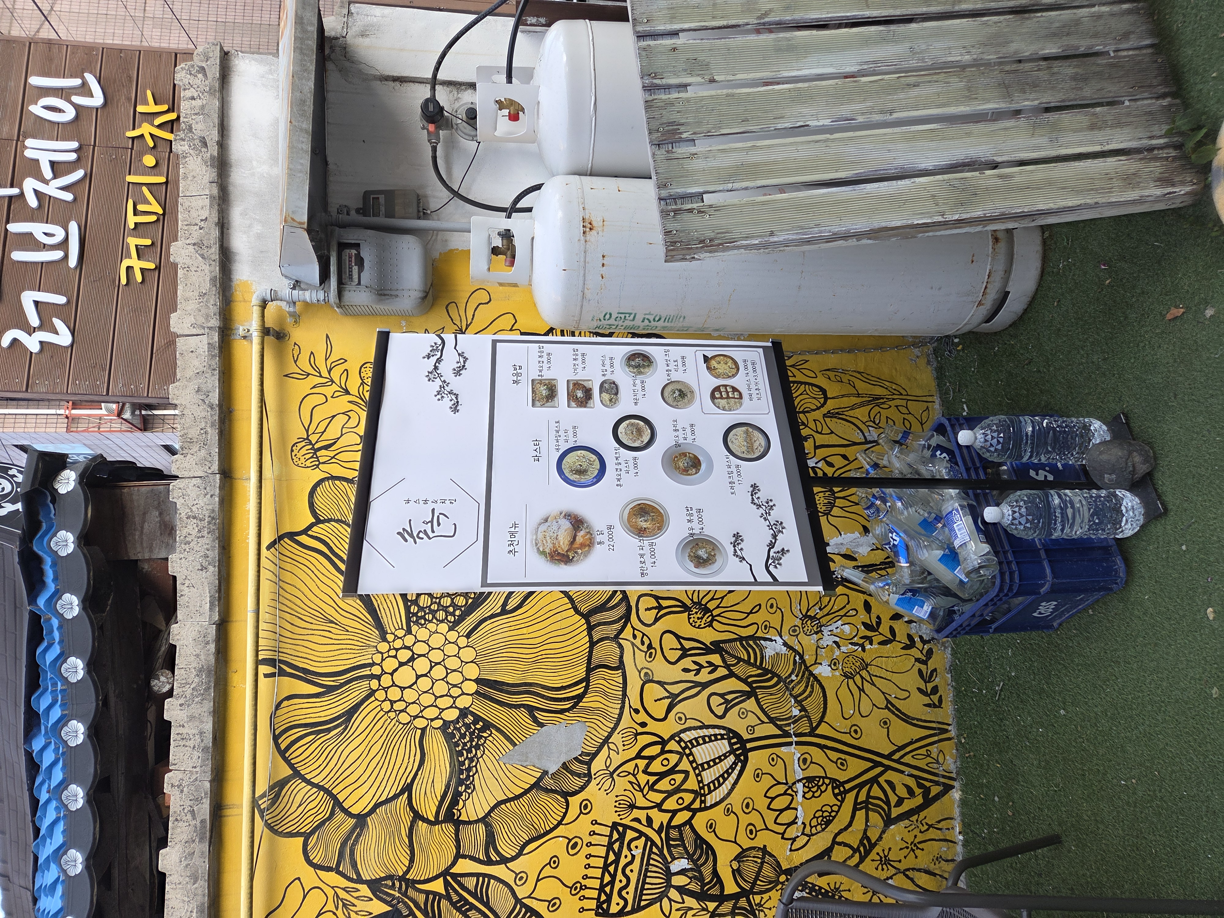 강릉 안목 파스타 맛집 솔옥은 마당처럼 된 공간에 야외 테이블도 있어요.