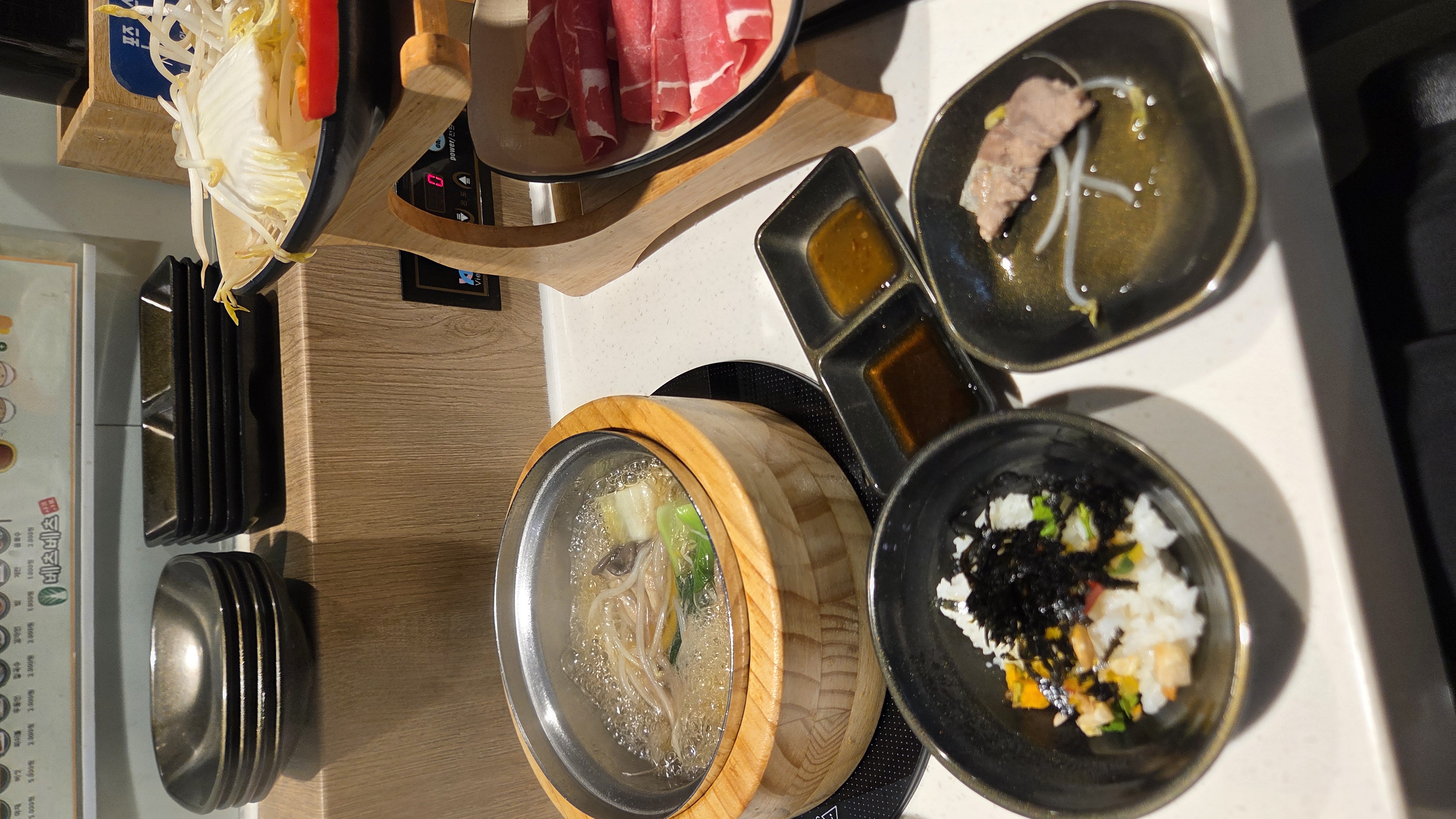 기본 상차림으로 나오는 소고기 샤브샤브 1인븐 이에요.